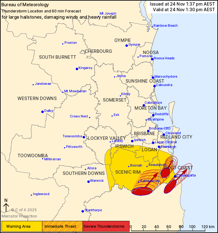 forecast to affect Coolangatta, Rathdowney and the McPherson Range
